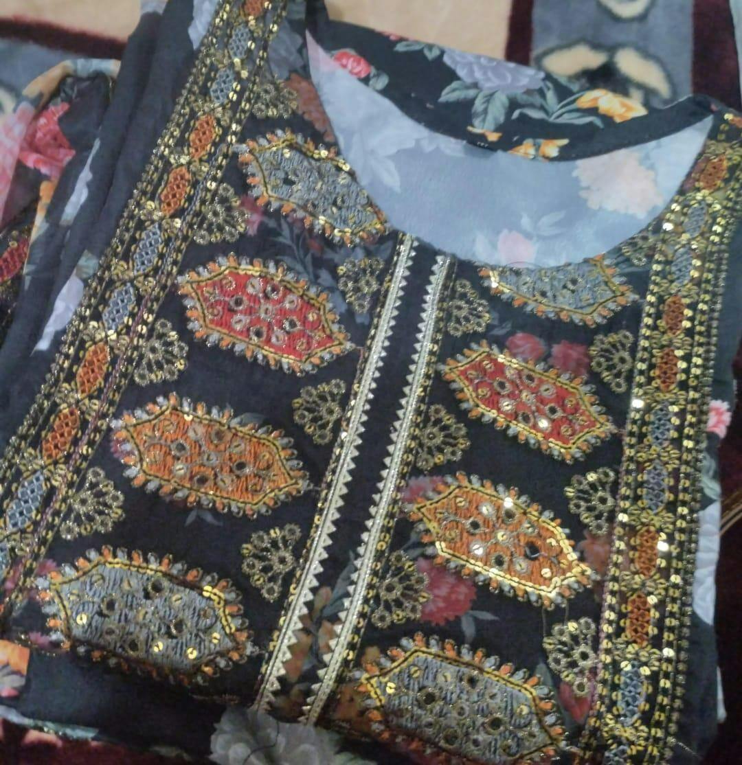 ✨ Details: Embroidered Front, Sleeves, and Border with Mirror & Thread Work