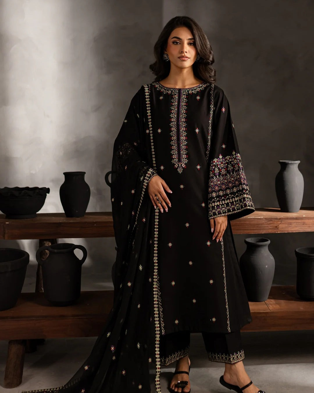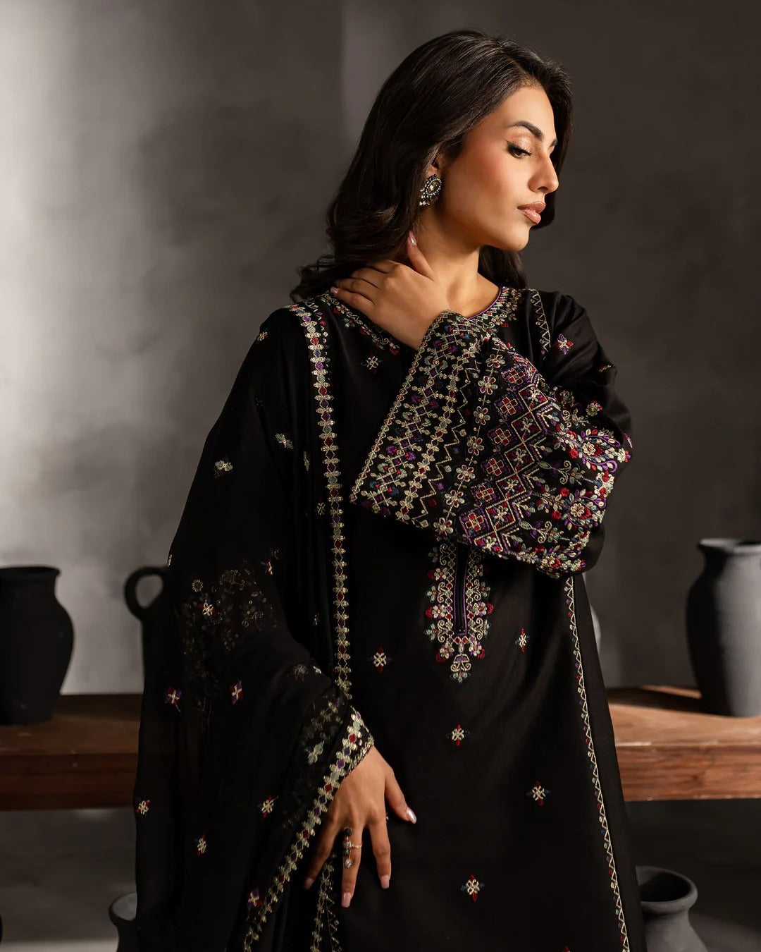 3-Piece Set: Includes an embroidered shirt and Embroidered trousers + Fine Embroidered Dupatta